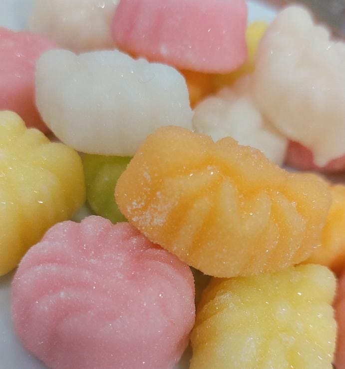De tendres bonbons aromatisés, de couleur pastel. Une texture onctueuse, qui fond doucement en bouche. Une véritable régression en enfance.